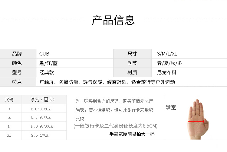 材質(zhì):萊卡布+毛巾布(手背),超纖+硅膠+SBR(手掌)
