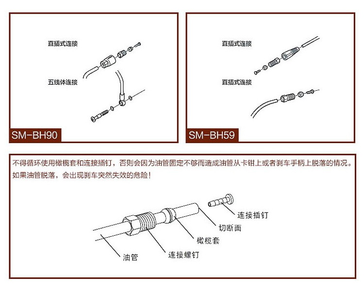 說明:欖頭是靠變形包在油管上起到固定與密封作用的,使用后的橄欖頭會變形且不可拆卸,所以鎖橄欖頭是一次性的。shimano剎車油管分為BH90/BH59,不同油管需要使用對應橄欖頭跟油針。