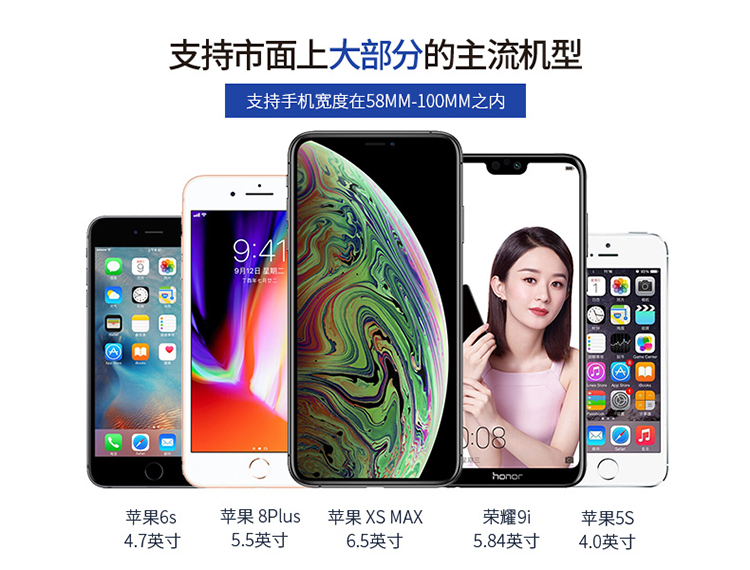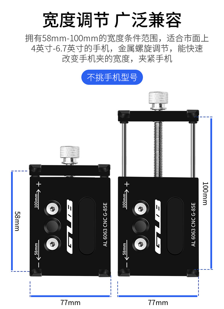 夾持范圍:58-100mm(4-6.7寸手機(jī))