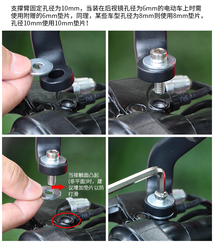 規(guī)格:支持55-100mm寬的設(shè)備,適合后視鏡孔位直徑10mm