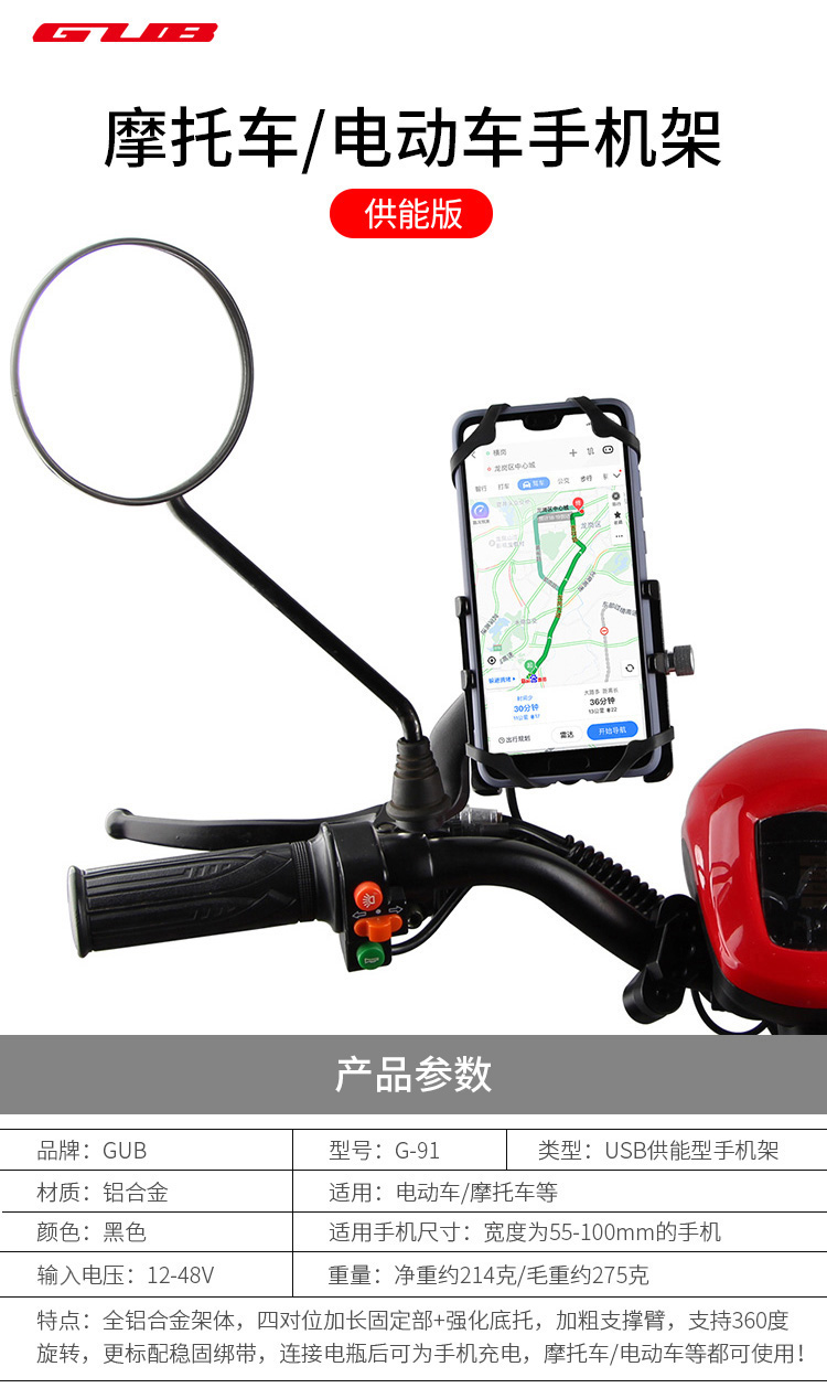 特點(diǎn):全鋁合金架體,四對(duì)位加長(zhǎng)固定部+強(qiáng)化底托,加粗支撐臂,支持360度旋轉(zhuǎn),更標(biāo)配穩(wěn)固綁帶,連接電瓶后可為手機(jī)充電,摩托車/電動(dòng)車等都可使用!