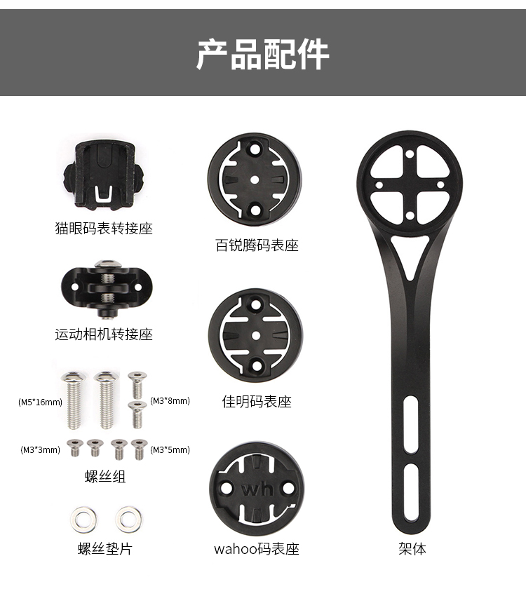 配置:配運(yùn)動相機(jī)轉(zhuǎn)接座,wahoo、佳明、百銳騰和貓眼碼表接座