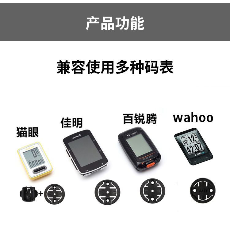 支持碼表:GARMIN全系列(兼用行者/黑鳥/iGPS等),貓眼全系列,百銳騰系列,wahoo系列
