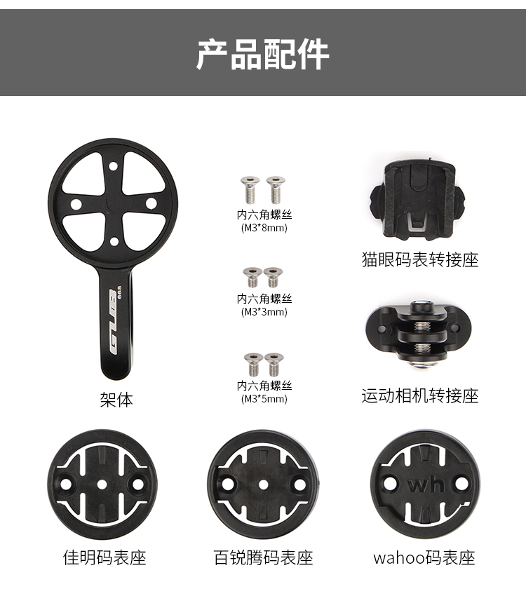 配置:配運(yùn)動(dòng)相機(jī)轉(zhuǎn)接座,wahoo、佳明、百銳騰和貓眼碼表接座