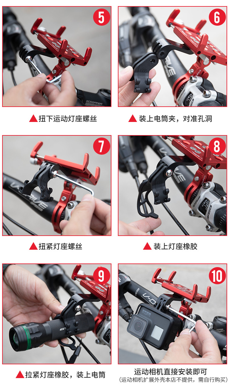 特點(diǎn):鋁合金架體,高兼容性不挑手機(jī)型號(hào),自行車、電動(dòng)車等都可使用。標(biāo)配電筒支架配件,豐富擴(kuò)展性能,讓你騎行無憂!