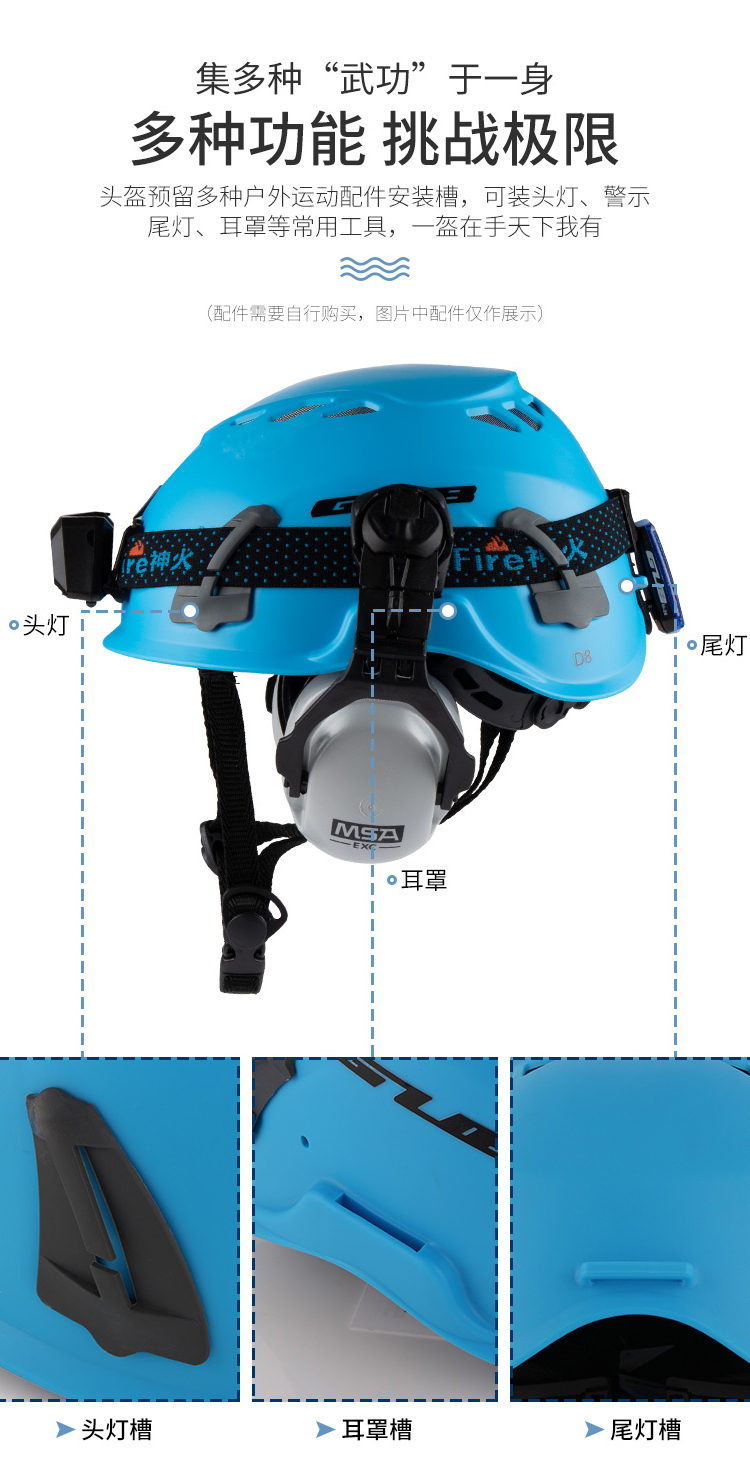 特色:簡(jiǎn)約大方的外觀設(shè)計(jì),PP+EPS高強(qiáng)度外殼不懼強(qiáng)烈沖擊,貼心半包邊內(nèi)襯佩帶舒適,自帶頭燈卡扣,支持加裝頭燈。帶耳罩插口,可加裝防噪耳罩。