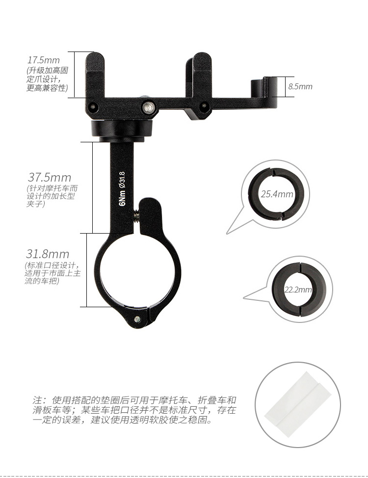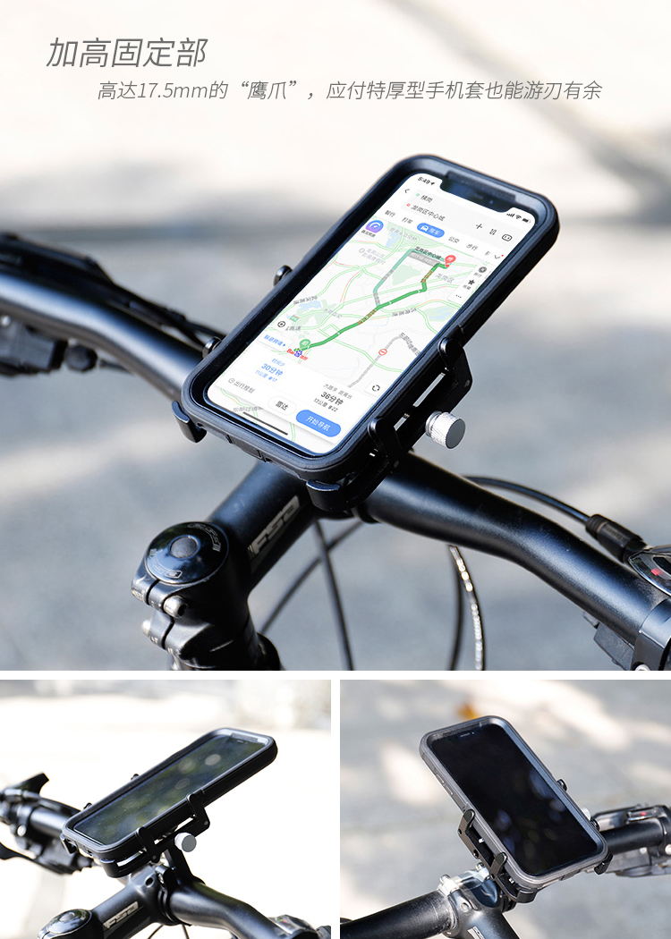 功能:加長固定部,可應(yīng)付加裝特厚手機殼的手機,標(biāo)配防盜螺絲和專用扳手,支持免工具平面360度旋轉(zhuǎn)。