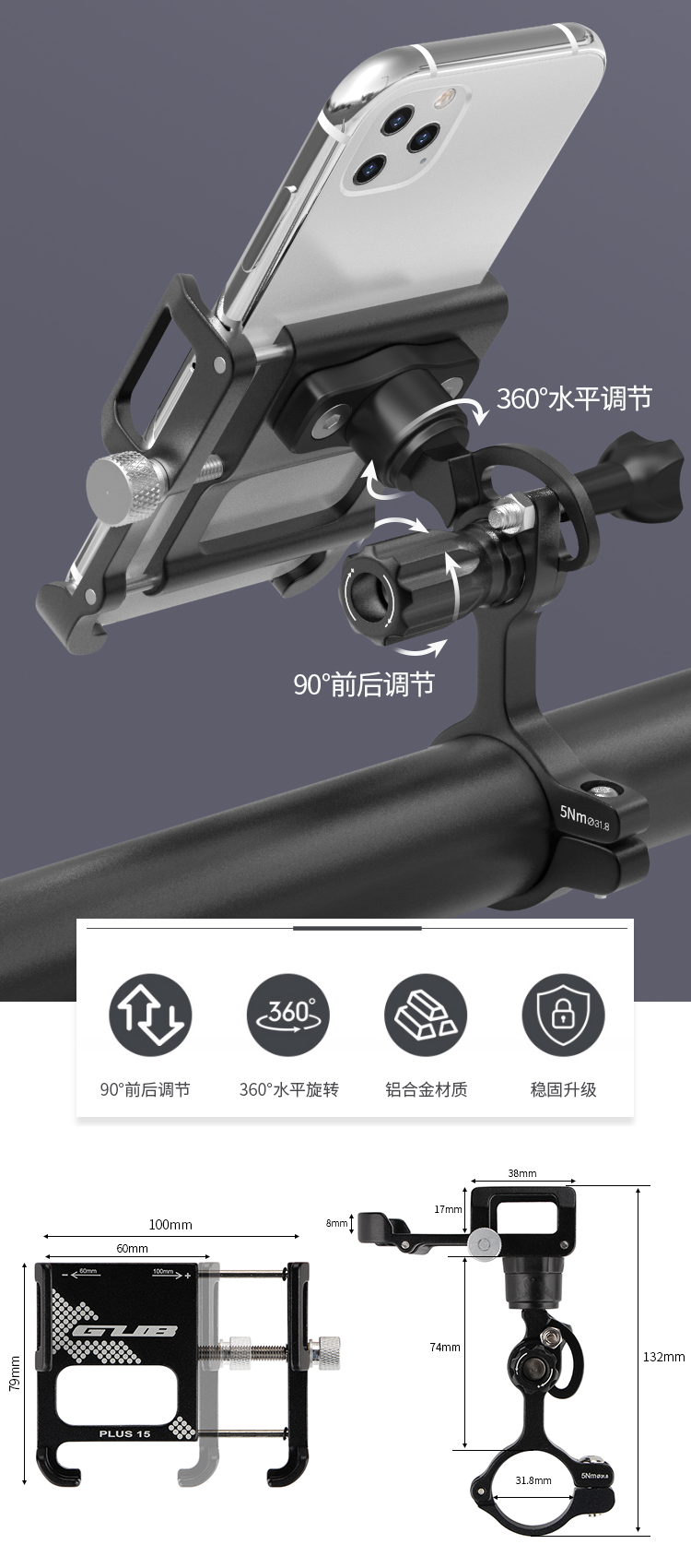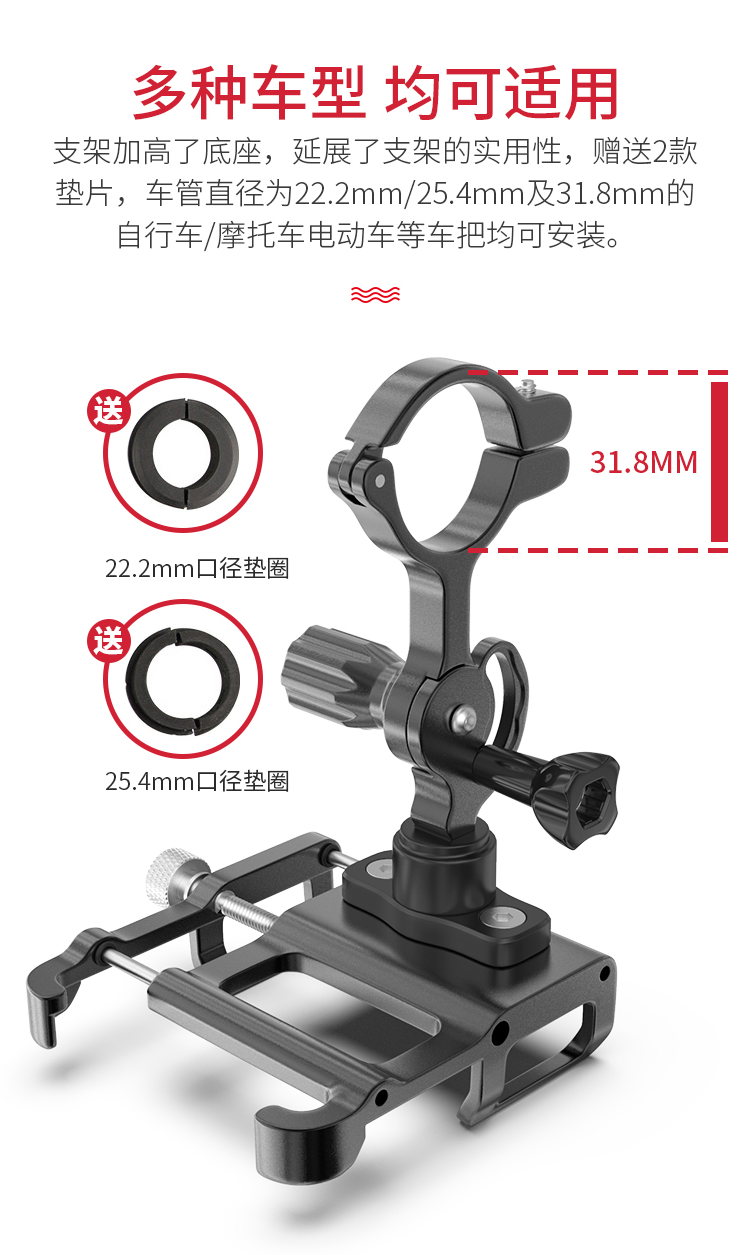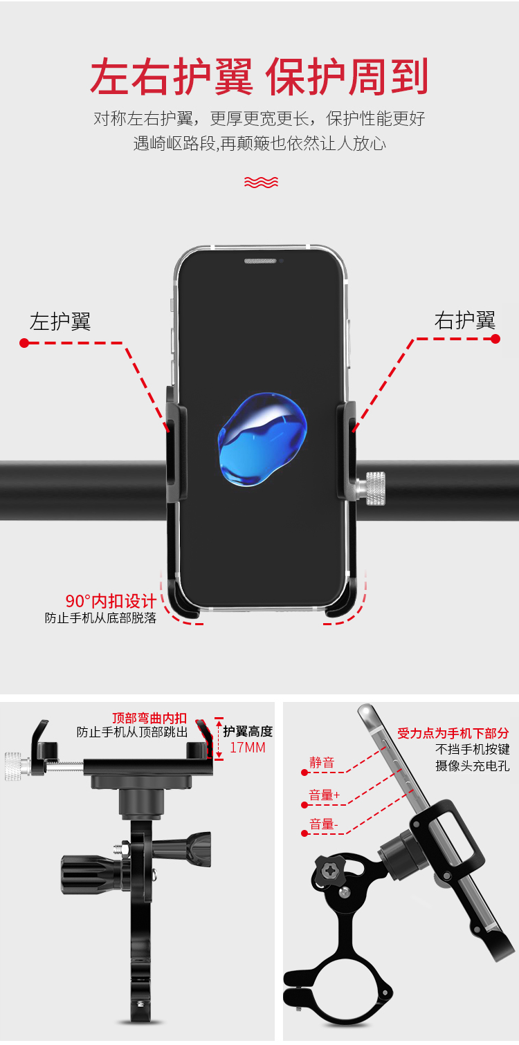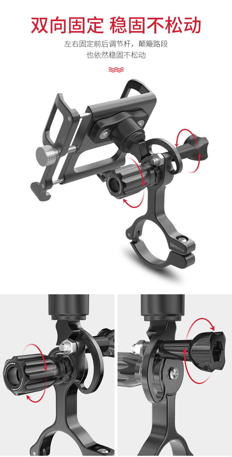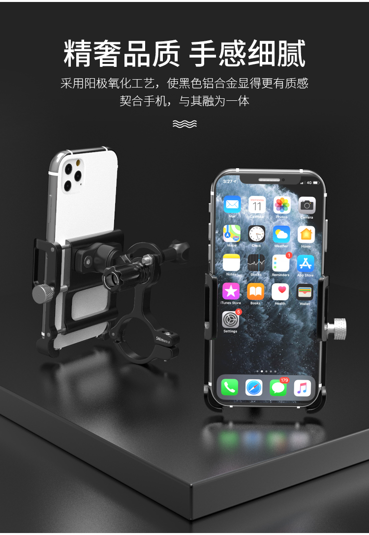 特點(diǎn):鋁合金架體,雙緊固旋鈕拒絕抖動(dòng),高兼容性不挑手機(jī)型號(hào),自行車、電動(dòng)車等都可使用!