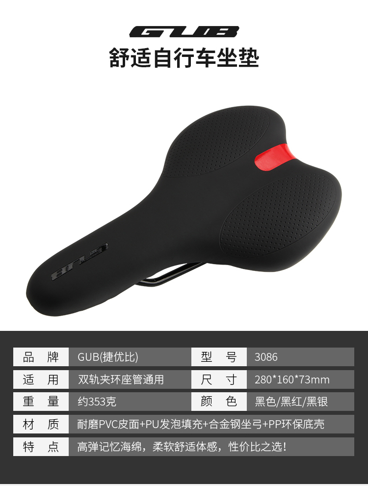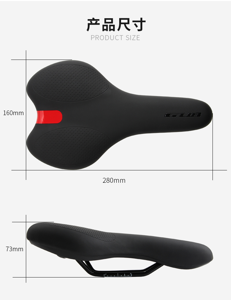 特色:高彈記憶海綿填充,舒適寬厚,合金鋼弓+PP底板,平穩(wěn)輸出,安心騎行!