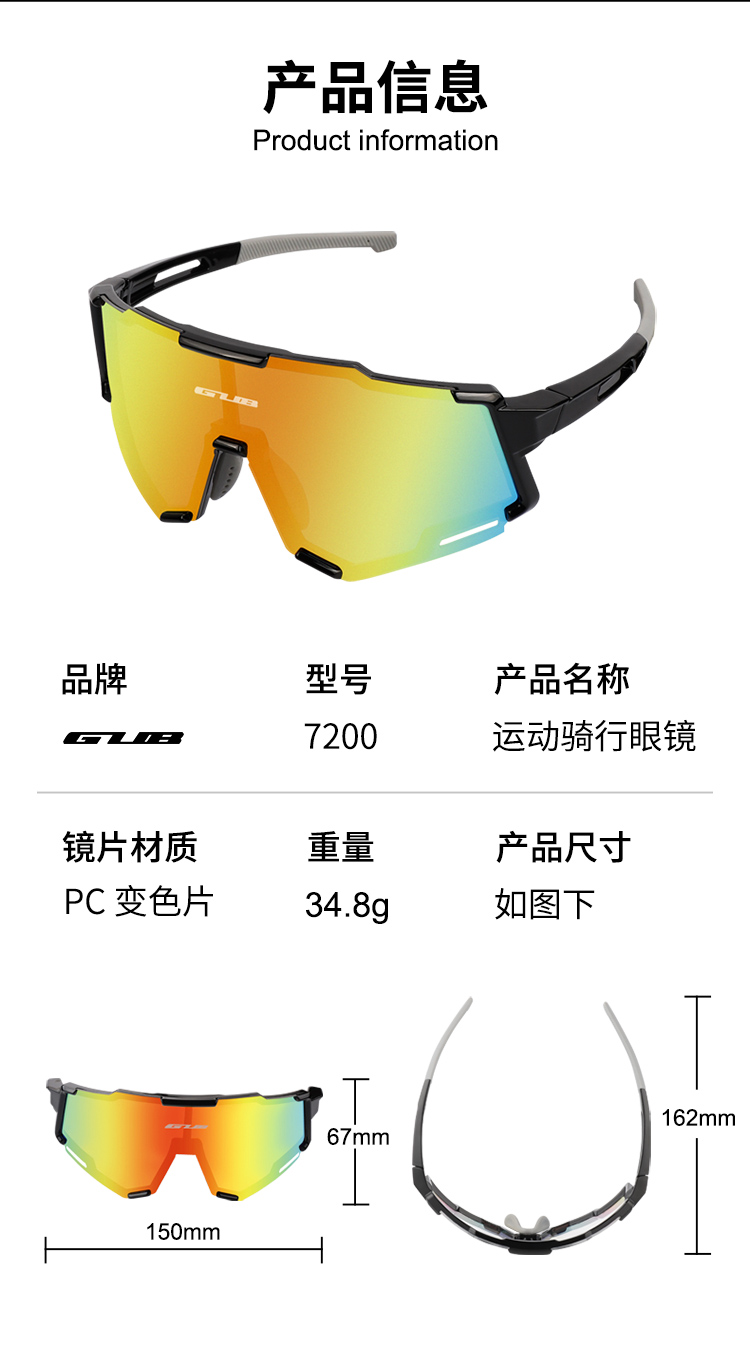 名稱:GUB 7200 變色眼鏡