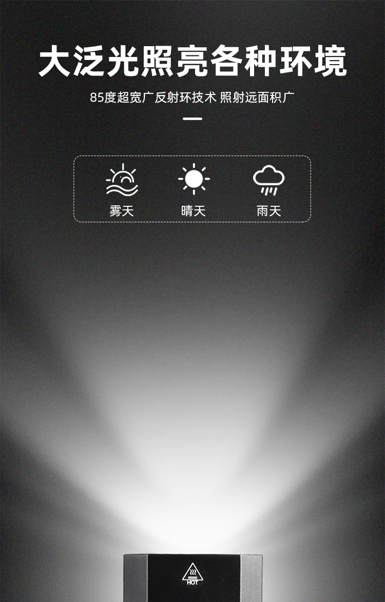 燈光模式:高亮/中亮/低亮/SOS