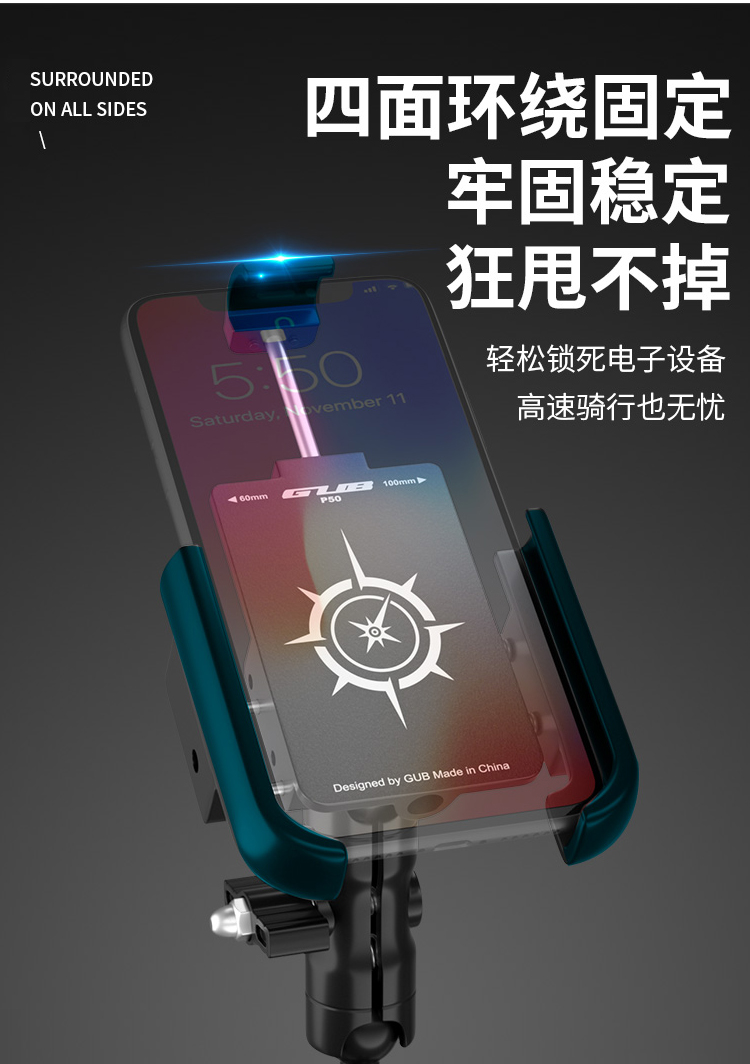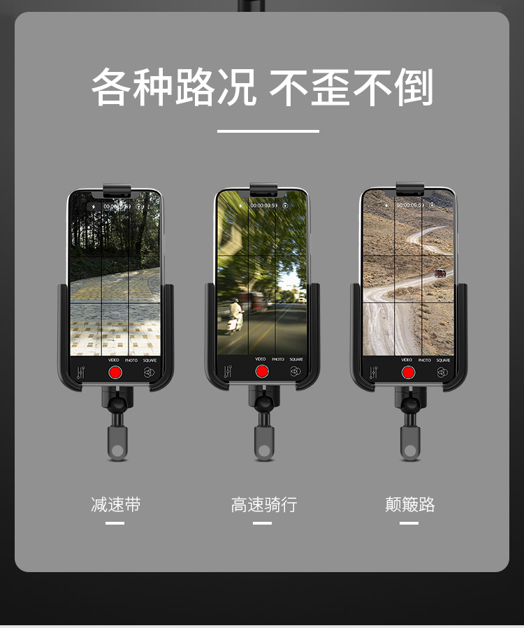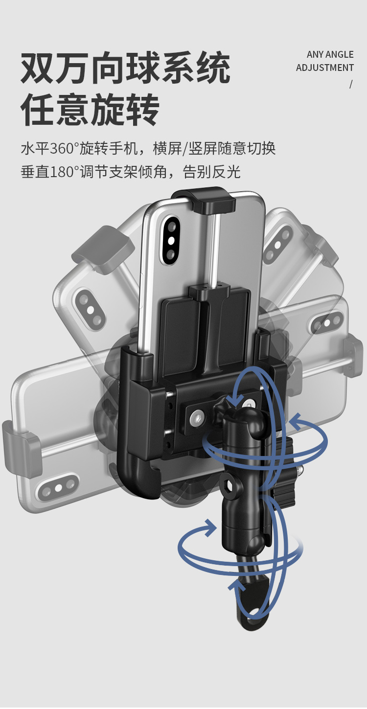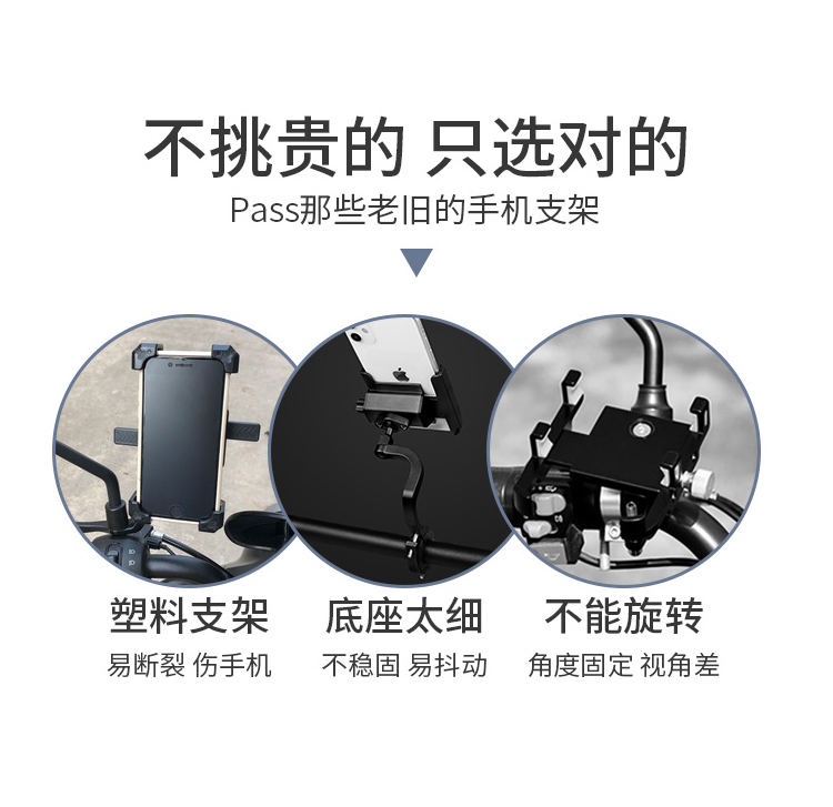 特點:鋁合金架體,高兼容性不挑手機型號,摩托車、電動車等都可使用,四面環(huán)繞固定,夾手機更牢固,快速取放省時省力,雙萬向球旋轉(zhuǎn)系統(tǒng),滿足多場景使用需求。