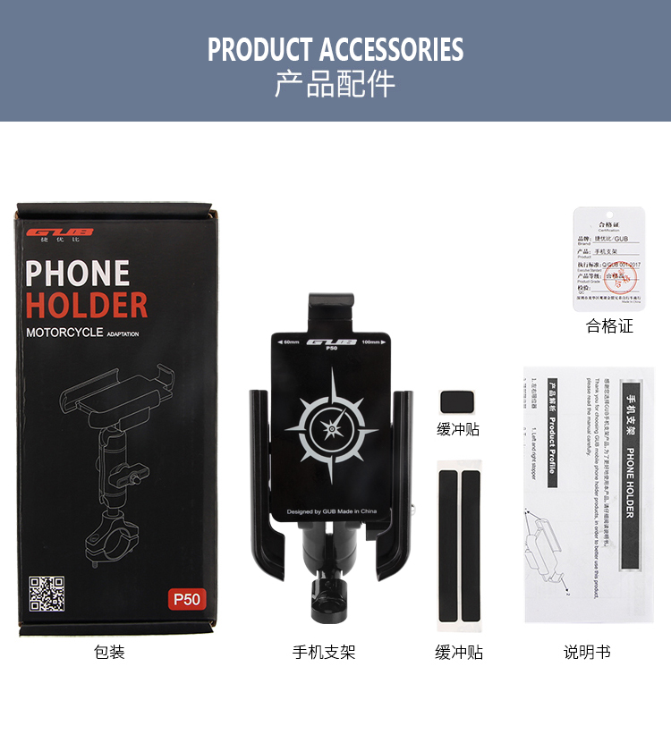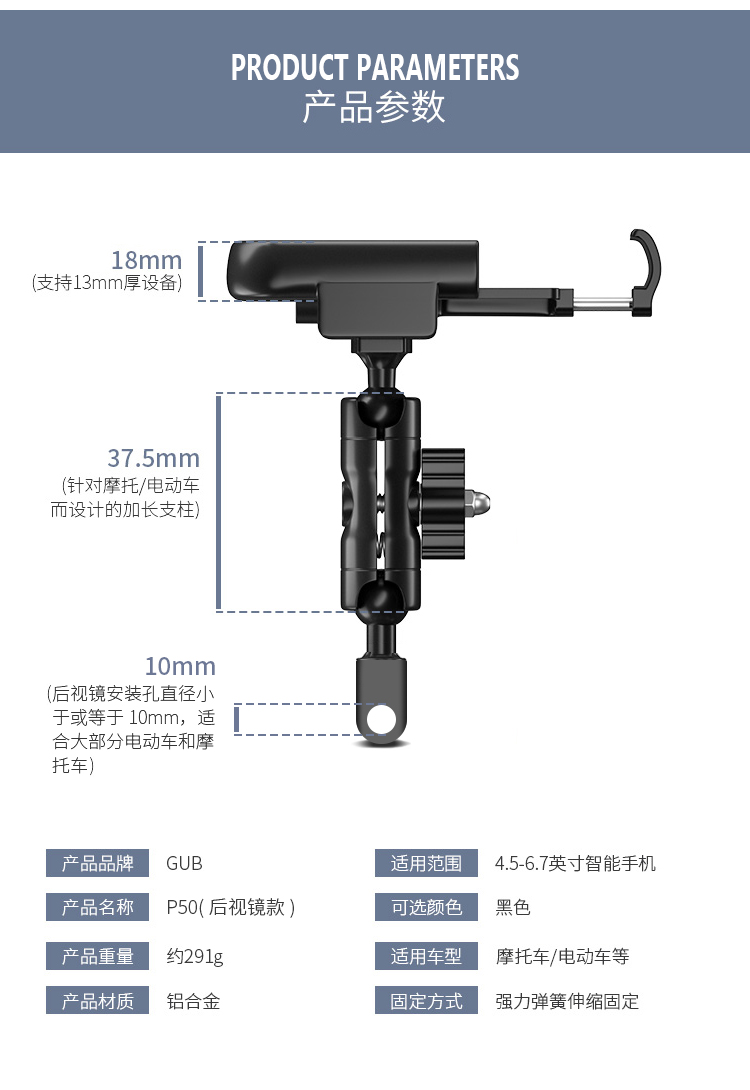 名稱:GUB P50 鋁合金手機支架(后視鏡款)