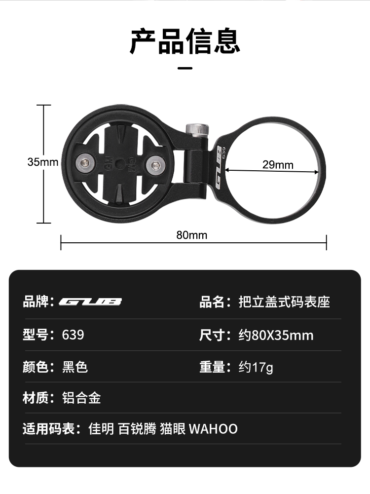配置:配wahoo、佳明、百銳騰和貓眼碼表接座,兼容多種碼表,可調(diào)角度設(shè)計(jì)