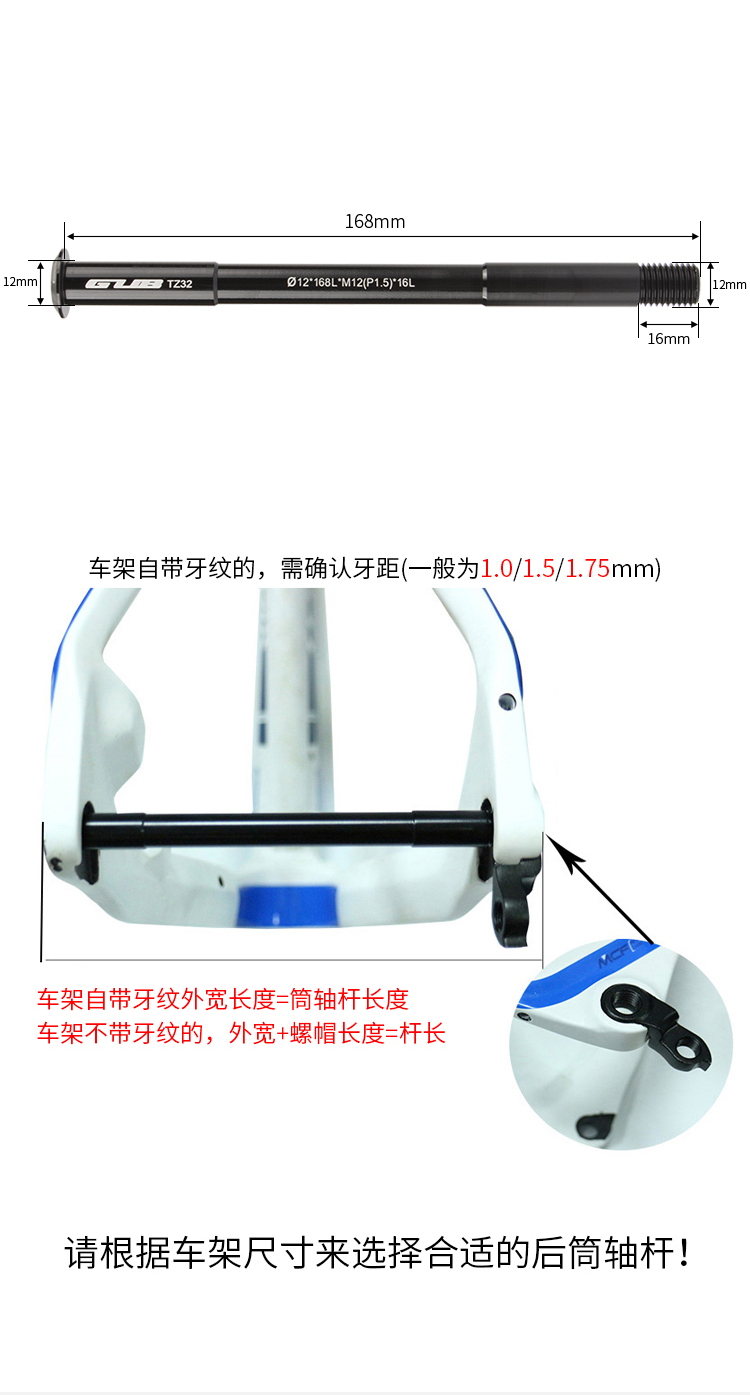 說明:請根據前叉和車架尺寸選擇合適的桶軸桿!