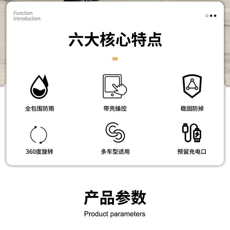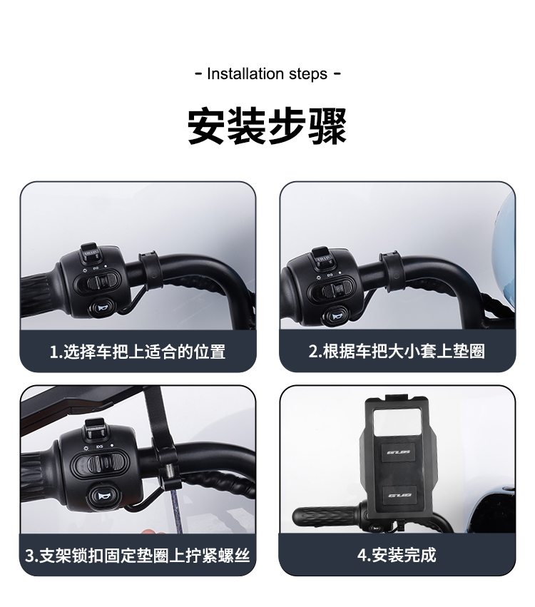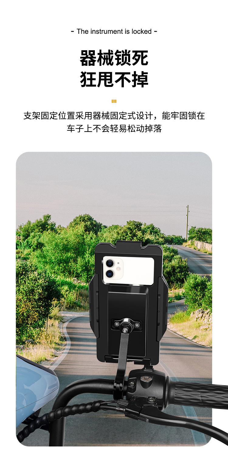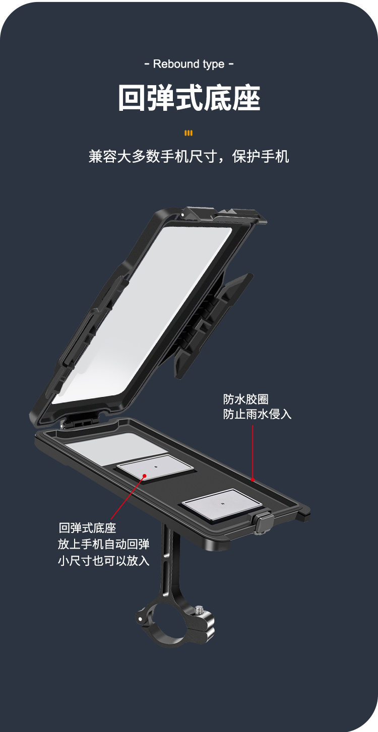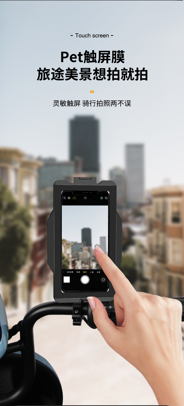 特點(diǎn):鋁合金支撐架,全封閉手機(jī)盒,防雨無(wú)憂,高兼容性不挑手機(jī)型號(hào),摩托車、電動(dòng)車等都可使用,滿足多場(chǎng)景使用需求。
