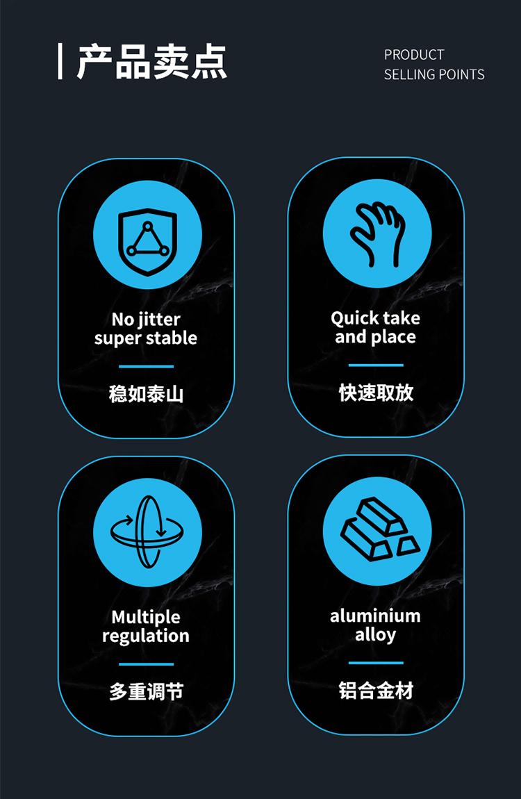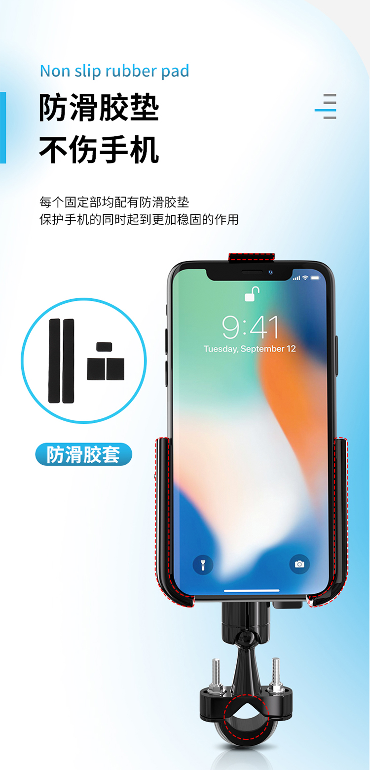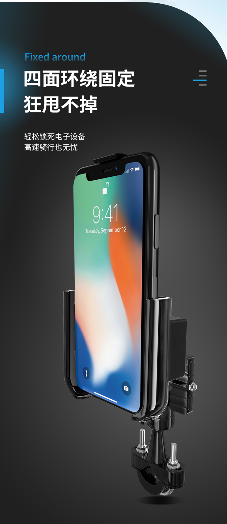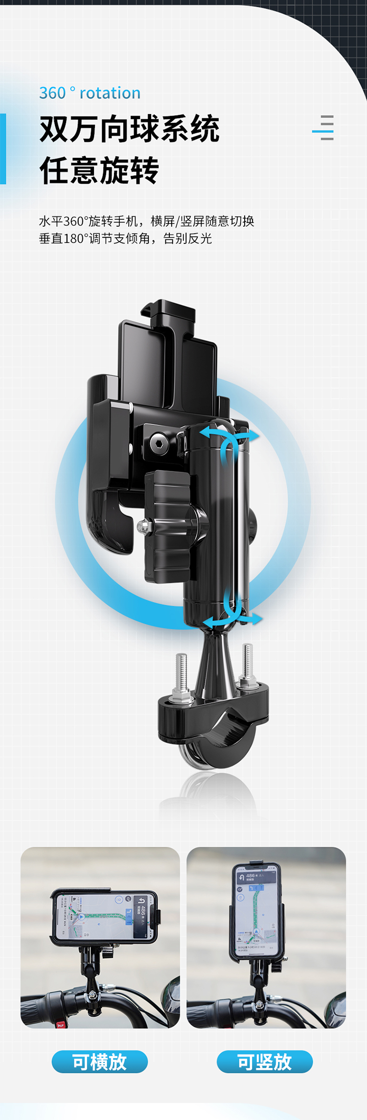 特點:鋁合金架體,U型夾更加堅固穩(wěn)定,適用性更廣,高兼容性不挑手機型號,摩托車、電動車等都可使用,四面環(huán)繞固定,夾手機更牢固,快速取放省時省力,雙萬向球旋轉(zhuǎn)系統(tǒng),滿足多場景使用需求。