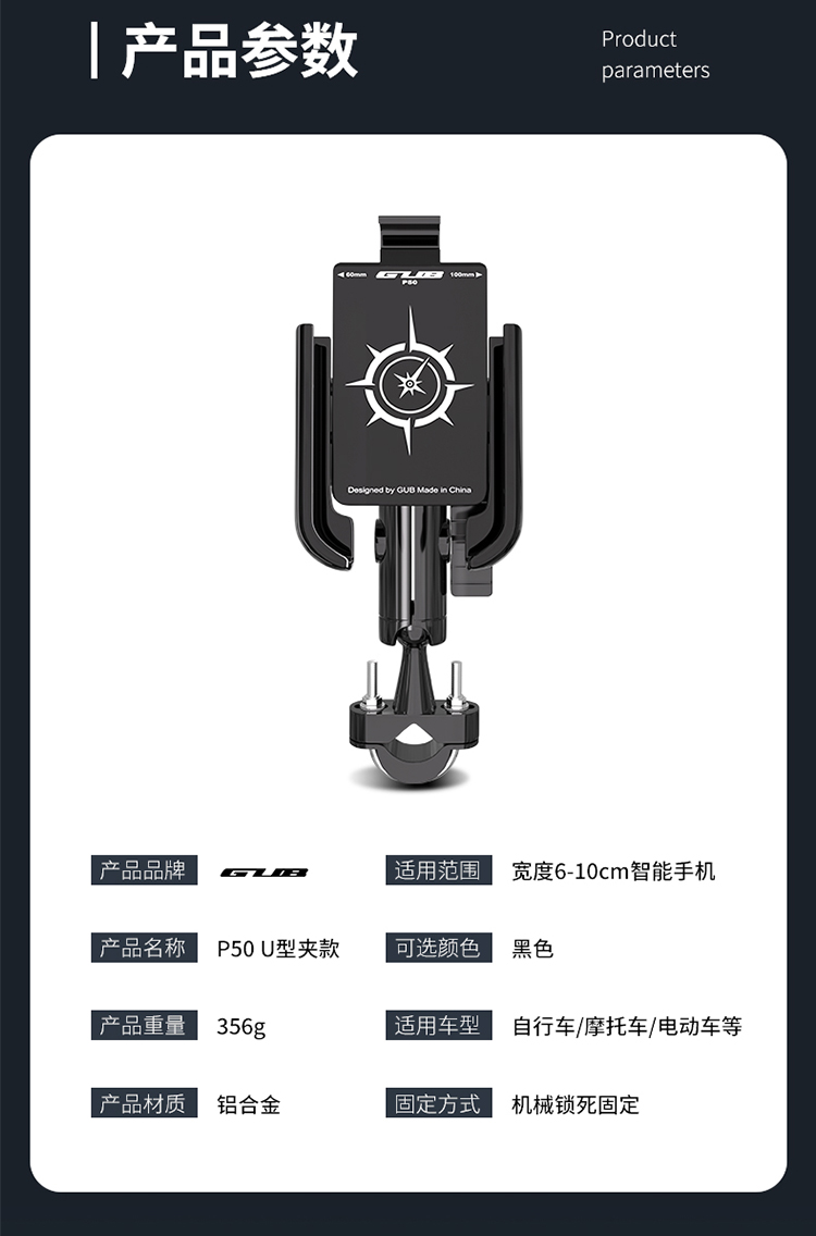 名稱:GUB P50 鋁合金手機支架(U型夾款)