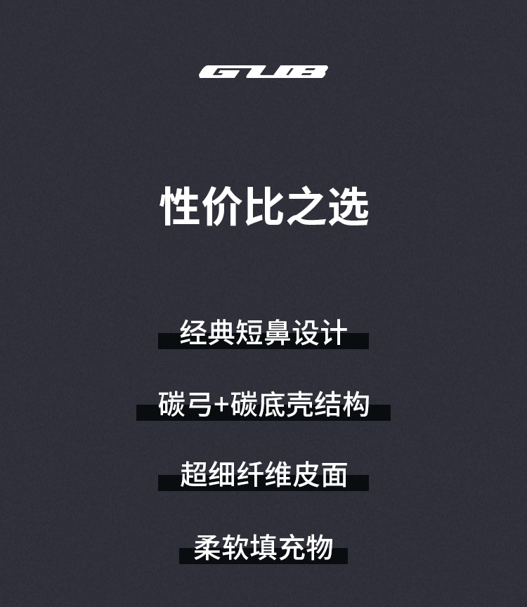 特色:經(jīng)典短鼻設(shè)計,柔軟填充物,超纖皮表面耐磨有質(zhì)感,碳纖維底殼+碳弓強度高重量輕,中空設(shè)計,疏風排熱