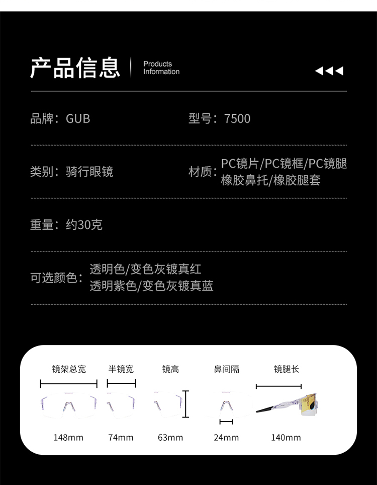 名稱:GUB 7500 炫彩變色眼鏡