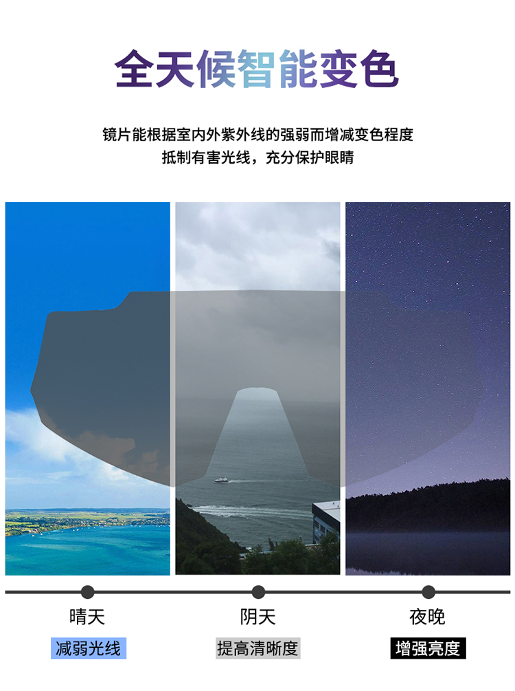 顏色:啞黑框腳/透明變色片、亮白框腳/透明變色片