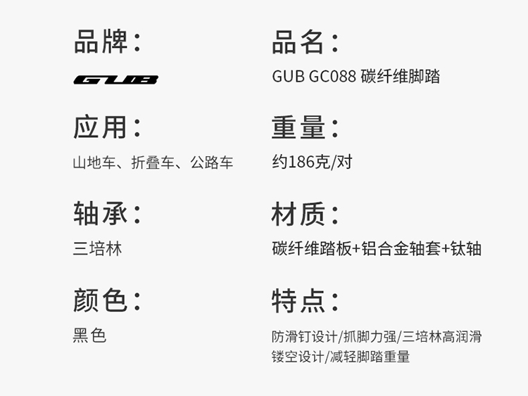產(chǎn)品:GUB GC088 碳纖維三培林腳踏