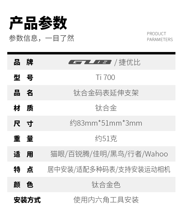 產(chǎn)品:GUB Ti 700 鈦合金碼表架