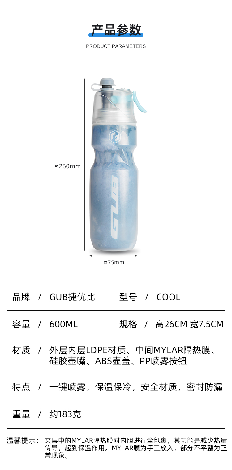 名稱:GUB COOL 噴霧運(yùn)動水壺