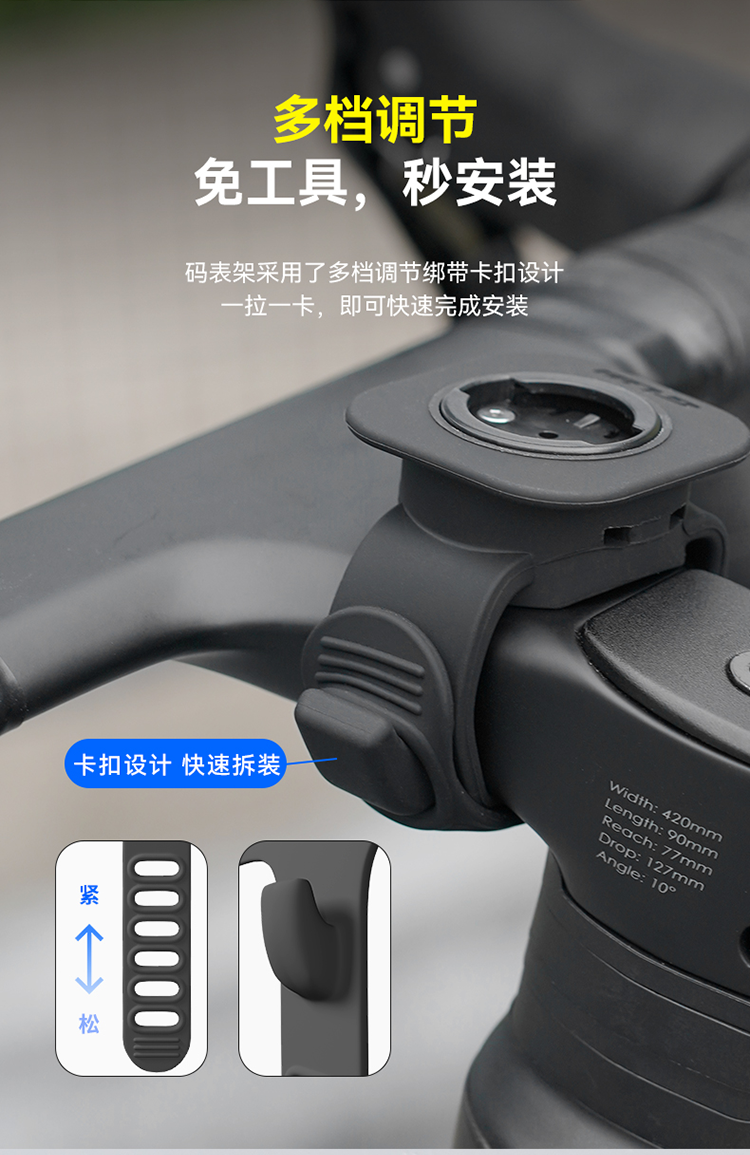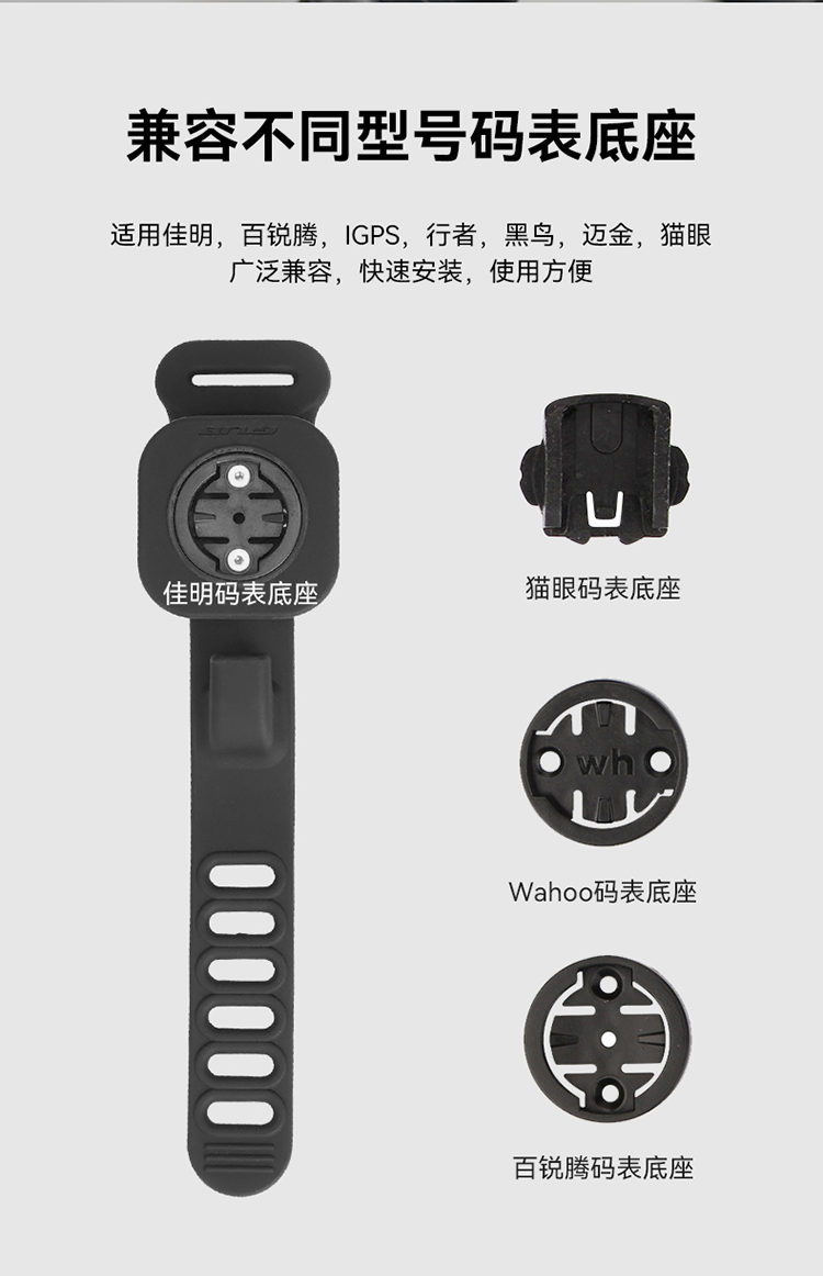特點(diǎn):硅膠架體,不傷車把,安裝方便,兼容多種碼表